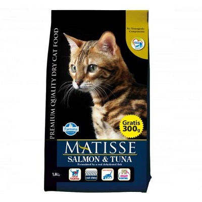 Farmina Matisse Salmon & Tuna is a complete balanced diet for any adult cat. The presence of two most favorite ingredients of cats Tuna and Salmon make it mouth-watering for all cats.