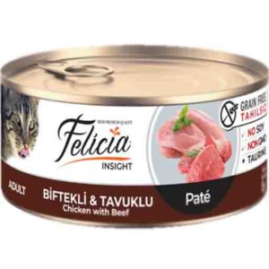 Felicia Kitten Chicken Pate Cat Food is specially formulated by veterinarians and nutritionists. Get ready for a unique consumption experience with the support of Taurine, the indispensable life source of our friends, and its special formula that does not contain GMOs and soy. We are ready to meet your expectations in the best way with its high meat rate and grain-free special content.