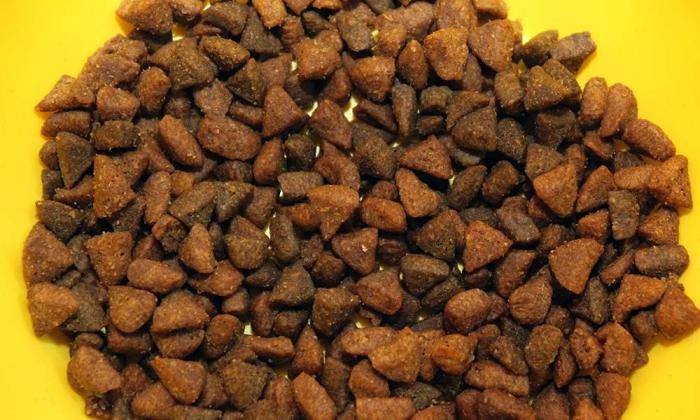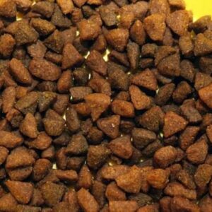 Fish protein (dehydrated), Brown rice, Peas, Chicken fat (preserved with tocopherols and citric acid), Menhaden fish meal, yeast extract, natural flavor, dried egg product, oatmeal, dried tomato, dried plain beet pulp, brewers dried yeast, flax seed, Bacillus subtilis fermentation extract, Taurine.