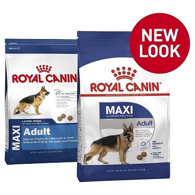 - Acti Flora: fosters a balanced gut flora and protects the intestinal walls through supply ofRoyal Canin Maxi Adult Dog Food is a complete feed for adult large breed dogs (from 26 to 4 kg) over 15 months old. Active and sporty by nature, your dog needs an energy supply which matches up to their way of life, particularly if, like utility dogs, they are performing in extreme conditions. Royal Canin Maxi Adult helps provide your dog with the following benefits:Vitality SupportAdapted content of nutrients to help maintain vitality in large breed dogs facing the first signs of ageing. Contains an exclusive complex of antioxidants to help neutralise free radicals.