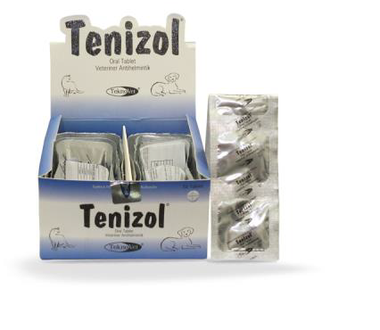 Tenizol Oral Tablet is a white coloured round tablet with a notch line in the middle. Each tablet contains 50 mg of praziquantel and 500 mg of fenbendazole.