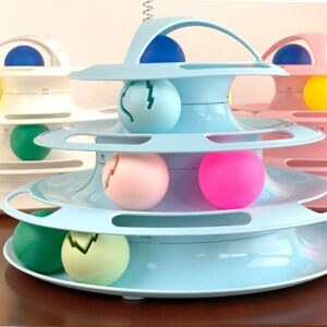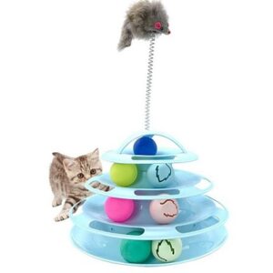 4-layer Track Roller Ball Puzzle Tower Cat Toy with Spring Faux Rat Pet Supply
